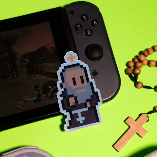 Blessed Solanus Casey Holographic Video Game Sticker