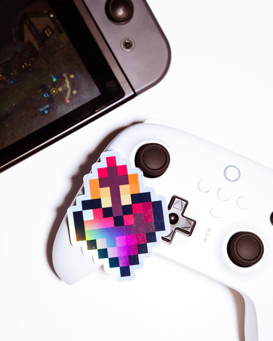 Holographic Sacred Heart of Jesus Video Game Sticker
