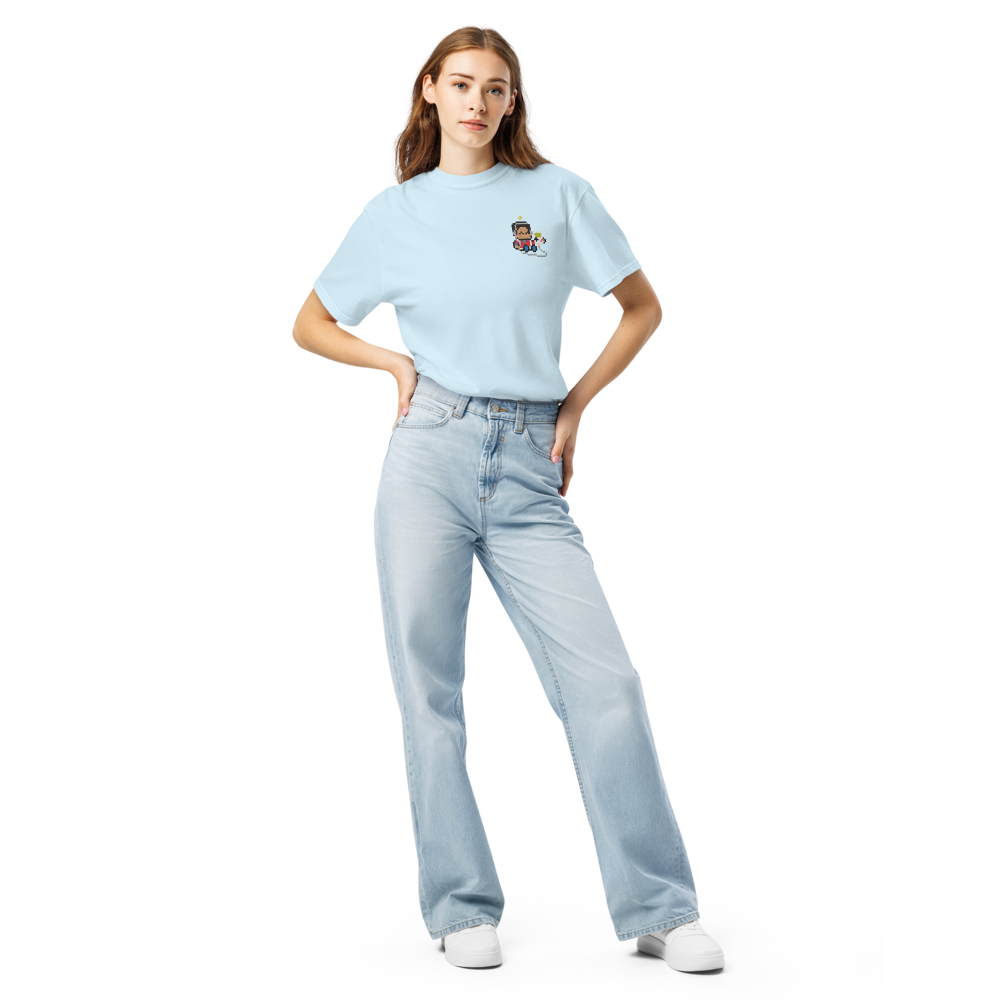 An ultra-soft, retro tee of Saint Carlo playing an original GAMEBOY, as a reminder of your adventure toward the Divine!